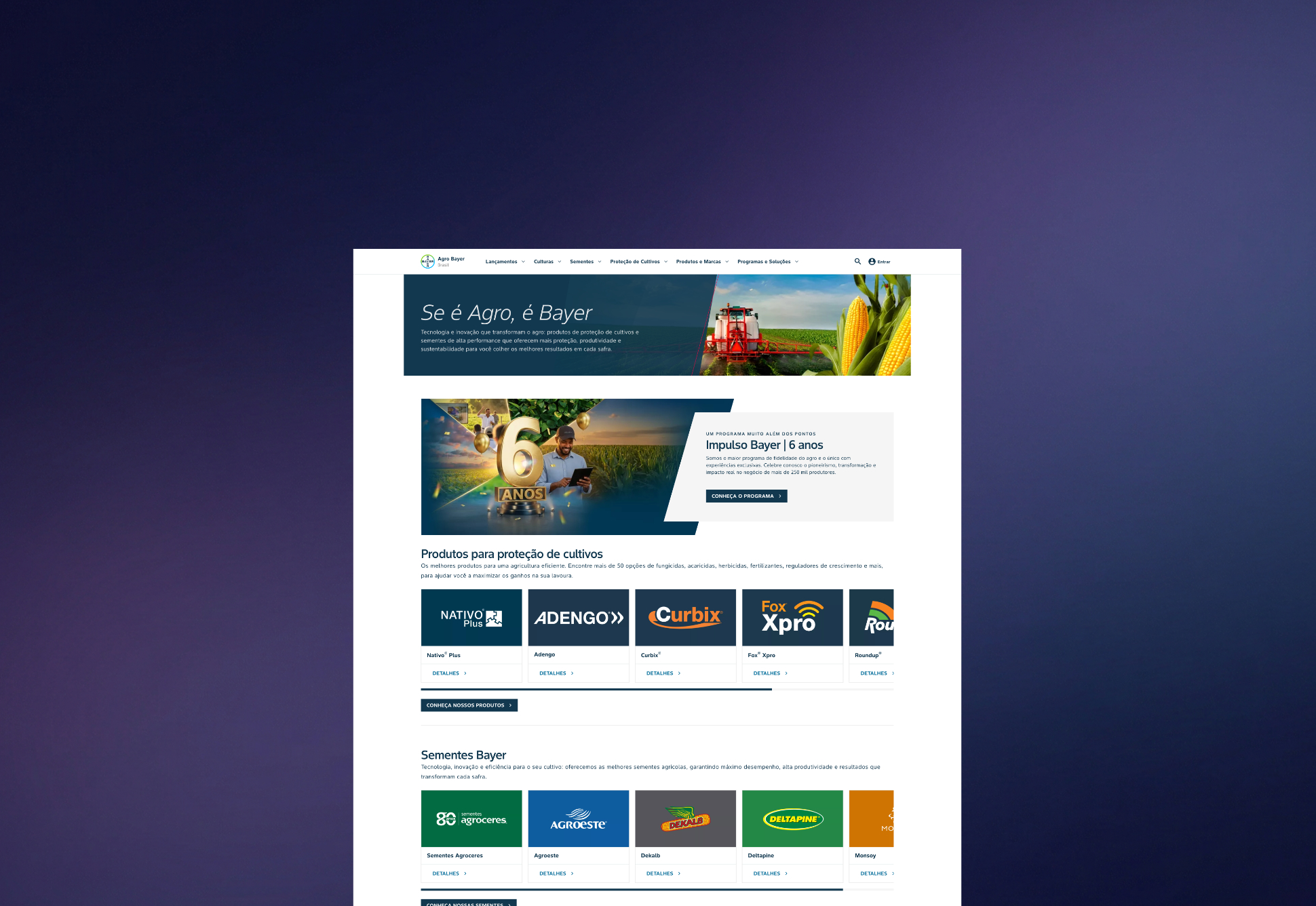 AgroBayer Brasil is the Brazilian agriculture portal of Bayer, designed to be a central learning hub for rural producers. The platform hosts articles, videos, live streams, products, and educational content aimed at supporting farmers in their daily decision-making.