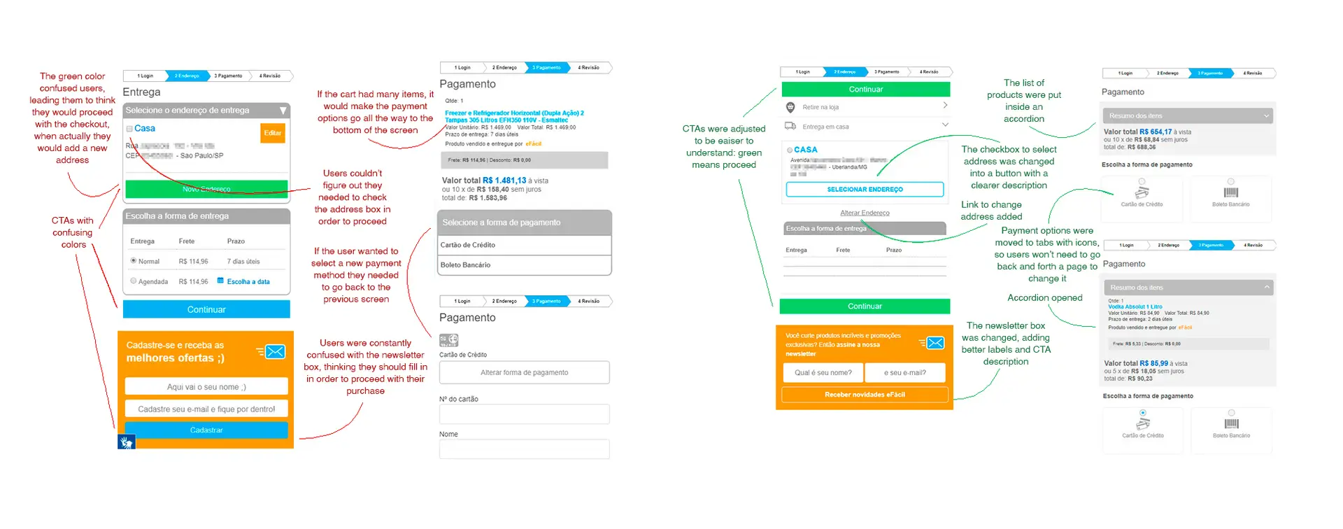 eFácil is a long-standing B2C e-commerce platform with over 20 years, whose checkout experience was not designed for mobile use. As mobile traffic grew, users increasingly struggled to complete purchases on their phones, resulting in low conversion rates.